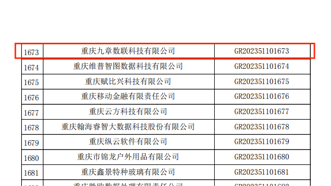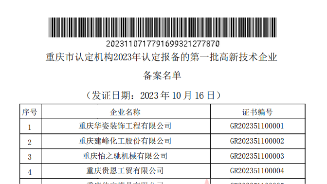 重慶市認定機構(gòu)2023年認定報備的第一批高新技術(shù)企業(yè)